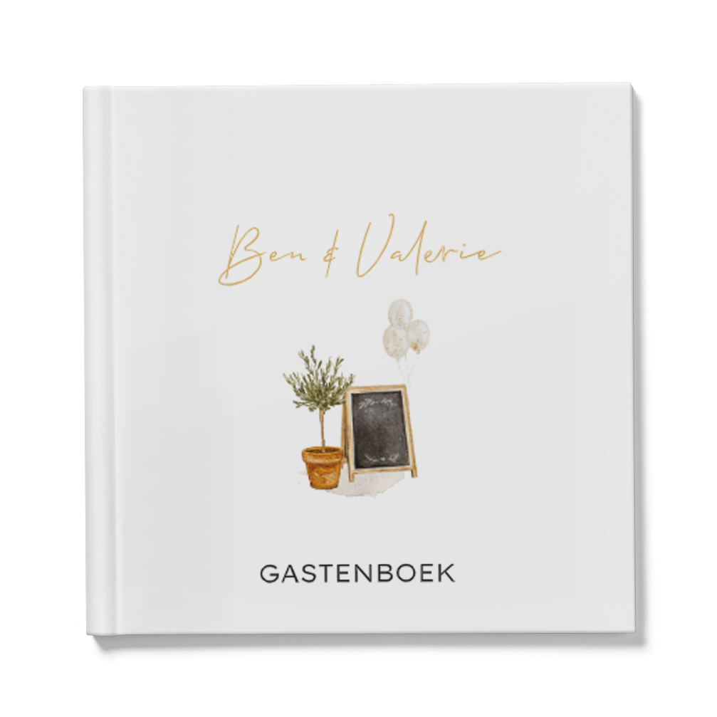 Gastenboek voor jullie bruiloft met aquarel illustraties met vintage tekeningen. De buitenkant van het boek kan je zelf bewerken en personaliseren. De binnenkant heeft witte bladen, hier kunnen de gasten een wens opschrijven.