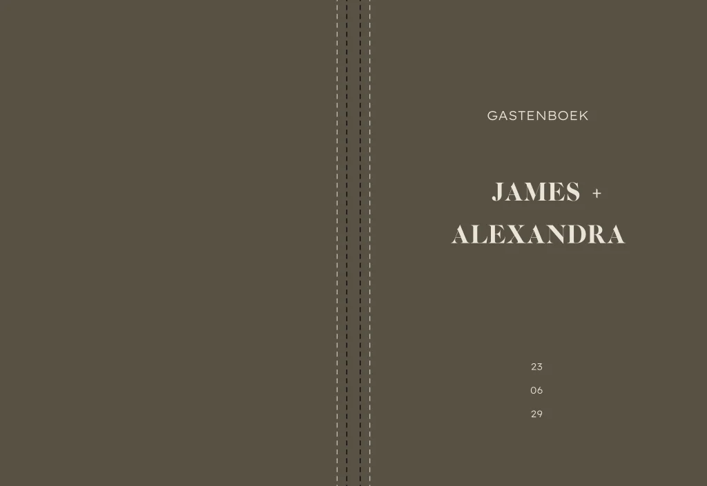 Gastenboek met donkerbruine achtergrond. Dit boek past bij onze trouwkaarten uit deze serie. Zo maak je al het drukwerk voor de bruiloft in één geheel.