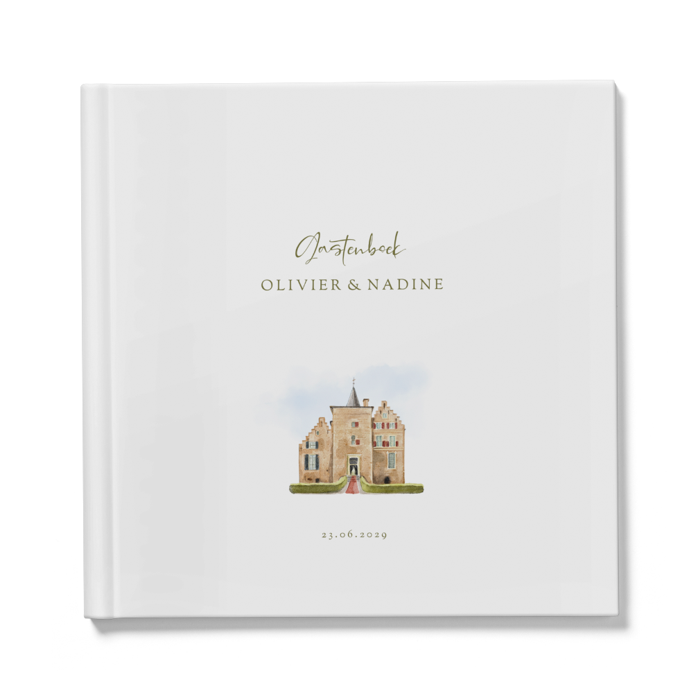 Gastenboek met een getekende trouwlocatie van kasteel wijenburg. Dit boek past mooi bij onze serie kaarten rond dit kasteel in Echteld.