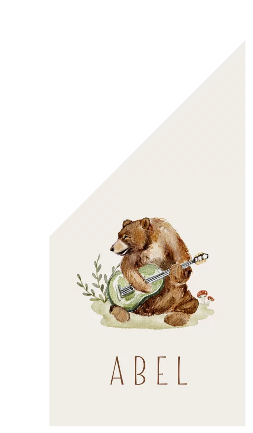Geboortevlag met een beer op een gitaar feest