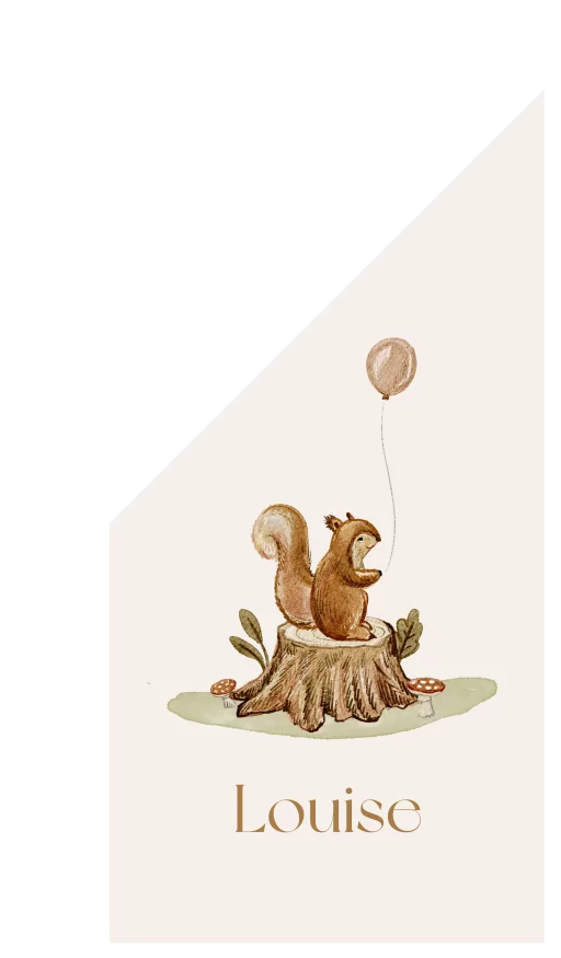 Geef de geboorte van je kindje een extra feestelijk tintje met een gepersonaliseerde geboortevlag! Ontwerp je eigen vlag met unieke, handgetekende illustraties die perfect passen bij de stijl en persoonlijkheid van jouw gezin. Deze geboortevlag heeft illustraties van eekhoorn op een boomstam met een roze vlag. Met deze vlag ziet de hele buurt dat er bij jullie een kleintje is geboren.
