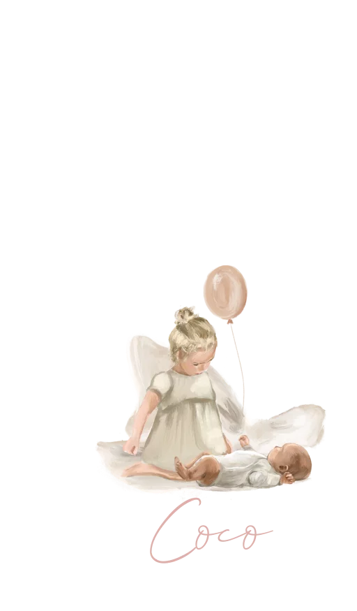 geboortevlag olieverf zusje bij baby met roze ballonnen