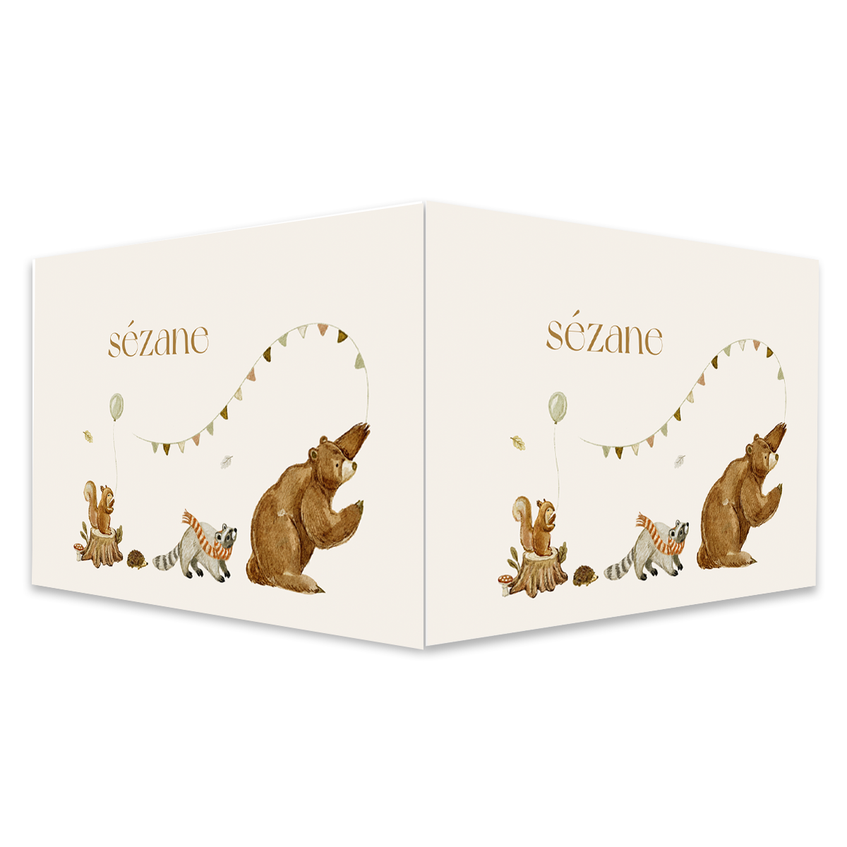Maak de geboorte van jullie kleintje bekend in de buurt met dit mooie dubbele raambord. Op het bord staat de nama van jullie kleintje, een beer, een eekhoorn, een das en vlaggetjes.