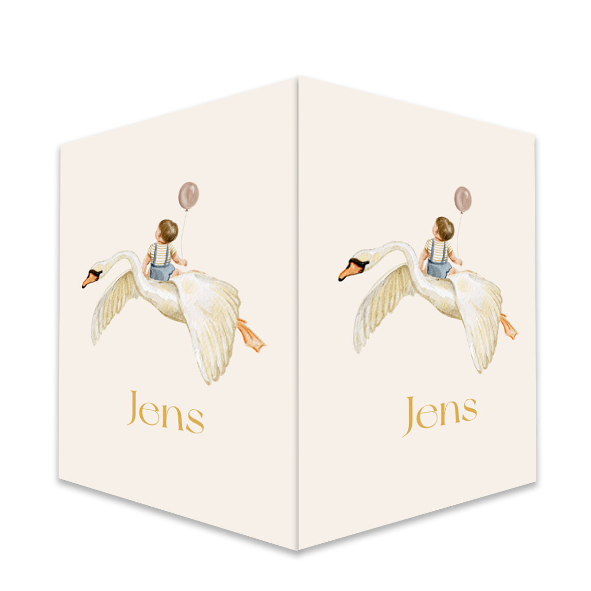 Laat het mooie nieuws van je kleintje stralen met dit dubbelzijdige raambord. De dromerige illustratie van een zwaan met een jongen en een ballon geeft een zachte uitstraling en maakt het de perfecte aankondiging voor de geboorte van je kindje. Het bord is zichtbaar vanaf beide kanten, zodat iedereen van buitenaf kan meegenieten.