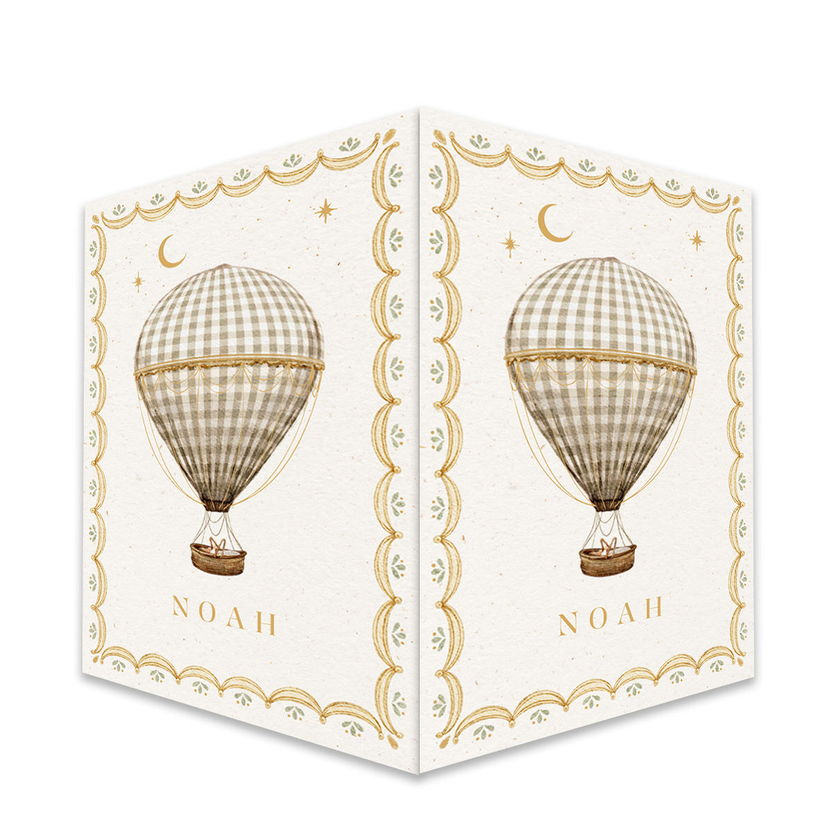 Dit prachtige raambord is een perfecte manier om aan iedereen in de buurt te laten zien dat jullie gezinnetje is uitgebreid met een kleintje. Op een achtergrond van beige papier is een luchtballon getekend met blokjes een beige kleur, maan en sterren. Aan de buitenrand staat een getekende border. Dit raambord past goed bij onze geboortekaartjes uit deze collectie. Heb je hulp nodig bij jouw raambord voor geboorte, laat het ons weten!