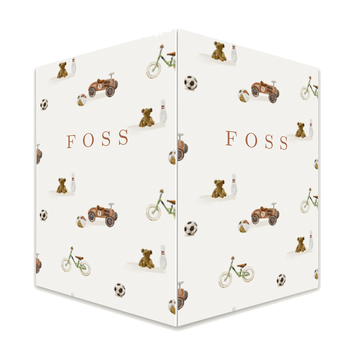 Dubbel raambord met een patroon van speelgoed. Dit staande makelaarsbord plak je op het raam, zodat de hele buurt kan zien dat er een kleintje is geboren bij jullie.