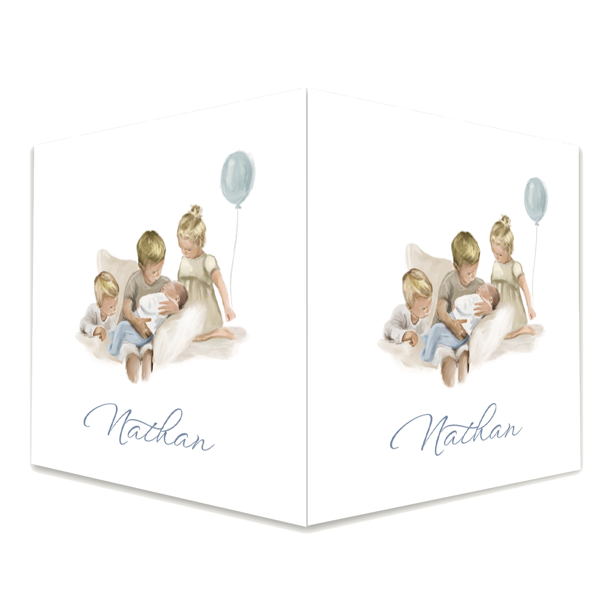 Dit prachtige raambord is een perfecte manier om aan iedereen in de buurt te laten zien dat jullie gezinnetje is uitgebreid met een kleintje. Op dit raambord staat een gezin met een baby, twee trotse broers en zus. De blauwe ballon maakt het kaartje helemaal af.