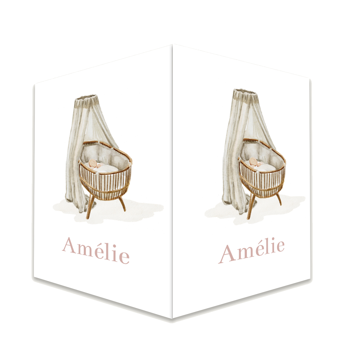 Raambord geboorte meisje met getekende wieg met hemeltje