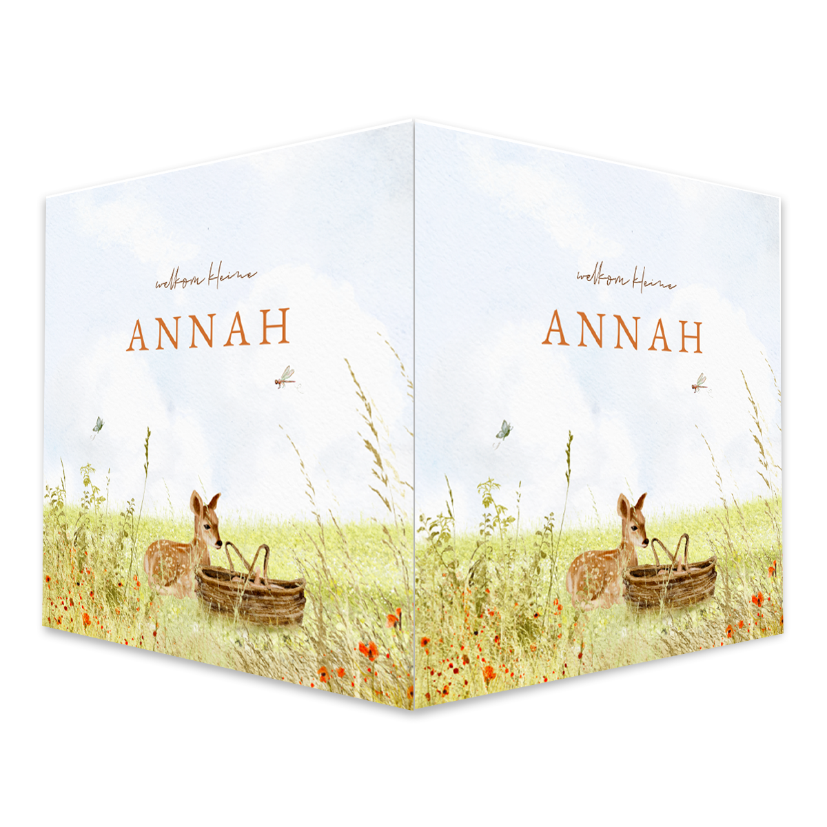 raambord geboortekaartje zomer hertje bij baby in mandje