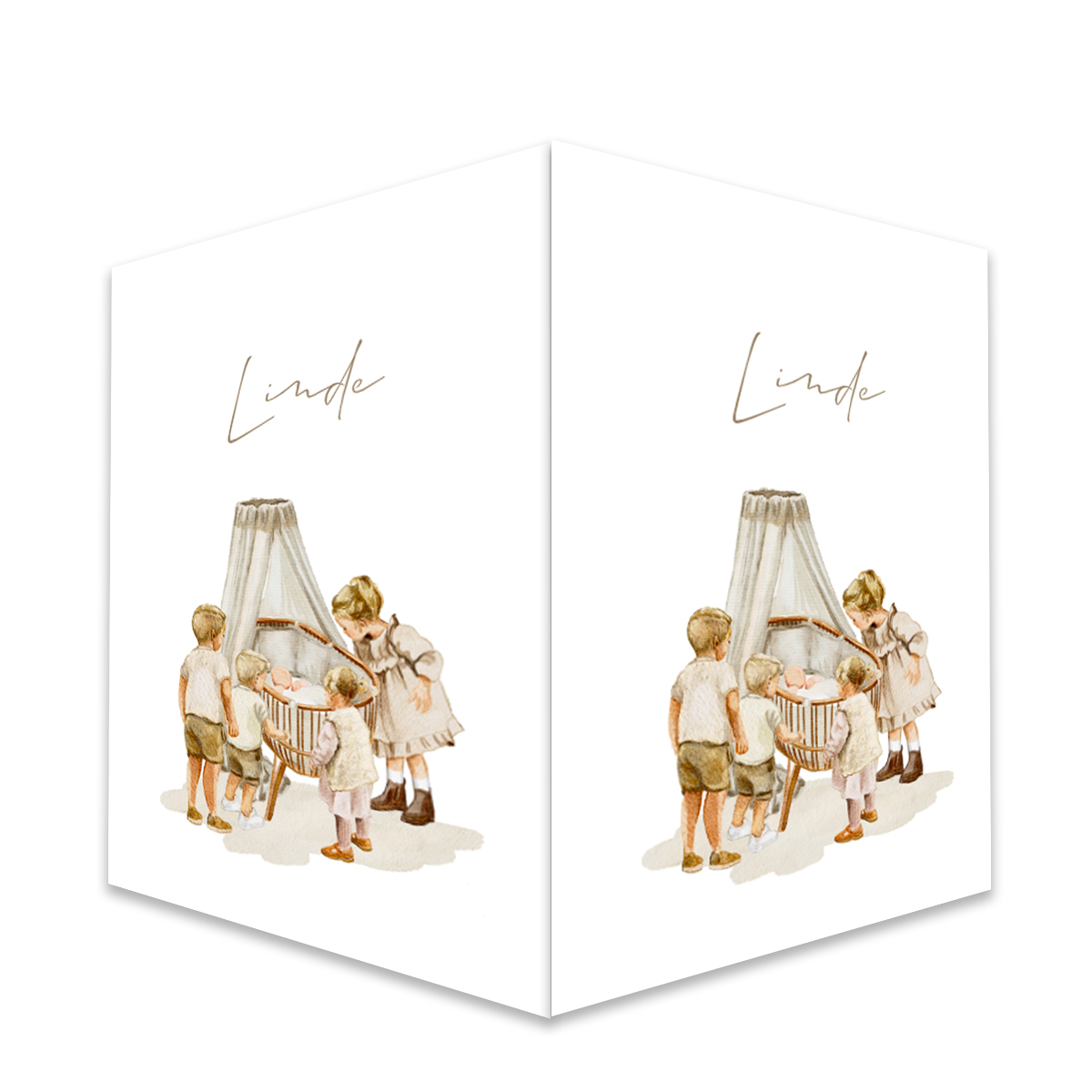 en uniek raambord ter ere van de geboorte van jullie vijfde wondertje! Dit prachtige ontwerp toont een liefdevol getekend wiegje in zachte aquarelkleuren, met subtiele details die een dromerige en warme uitstraling geven. Een mooie manier om jullie blijdschap te delen met de buitenwereld. Perfect om het feestelijke nieuws te vieren en jullie huis op een stijlvolle manier te laten stralen!