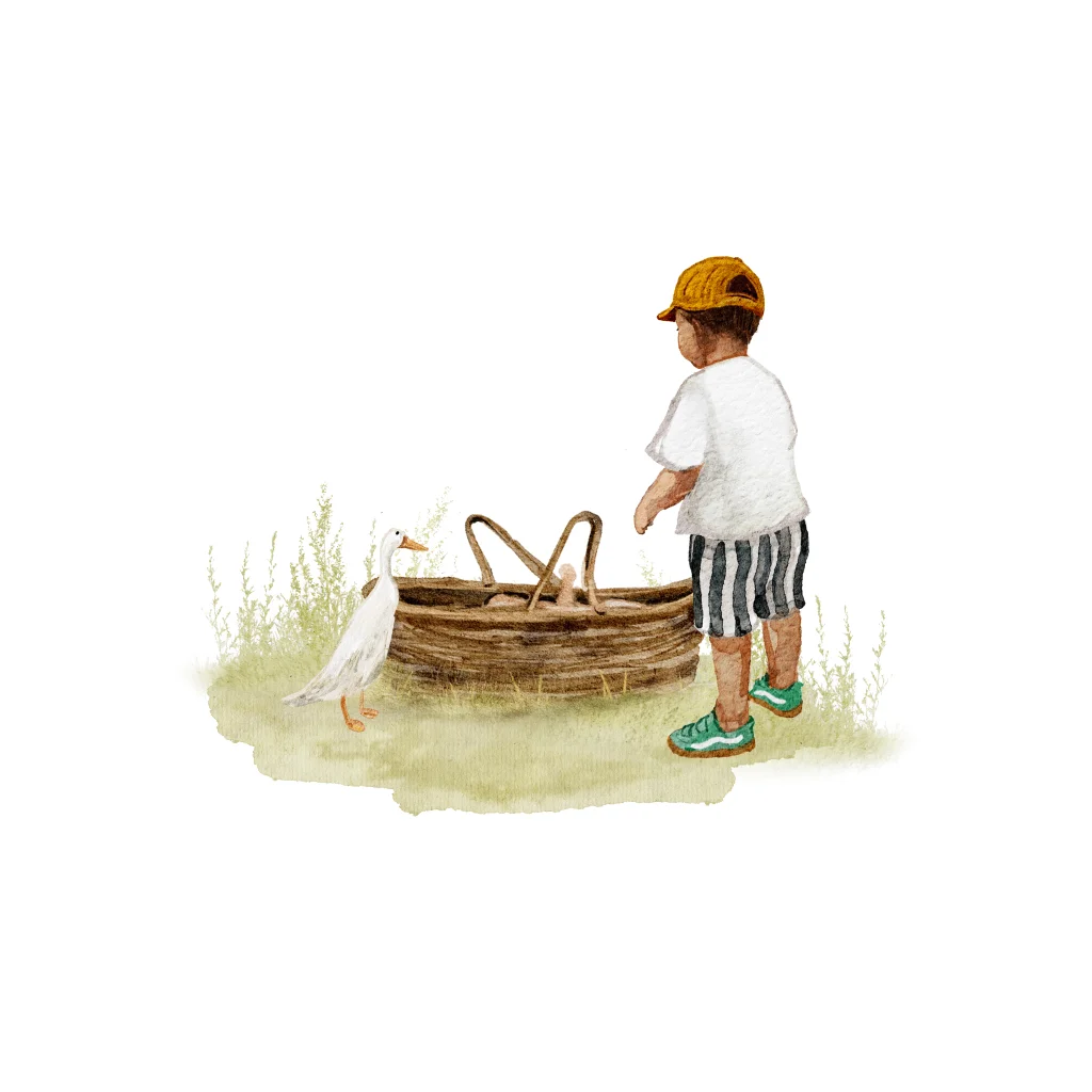 Een sfeervolle getekende sluitsticker passend bij het geboortekaartje, met een donker kindje en zijn grote broer in een warme lentesfeer. Perfect om de envelop stijlvol en persoonlijk af te sluiten.