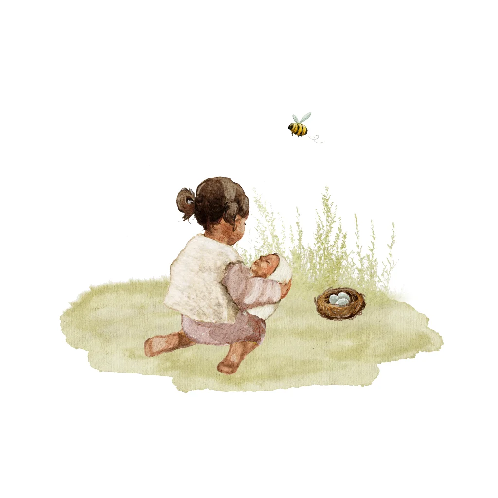 Een prachtige getekende sluitsticker die perfect past bij het geboortekaartje. Dit ontwerp met getinte kindjes en een lief zusje straalt een warme lentesfeer uit. Ideaal om de envelop stijlvol en persoonlijk af te sluiten.