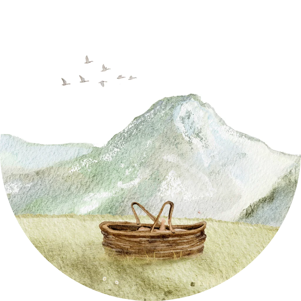 Maak je geboortekaartje compleet met een sluitsticker met een achtergrond van bergen en een baby in een mandje. Gebruik deze stickers als sluitzegel voor de envelop of voor een traktatie.