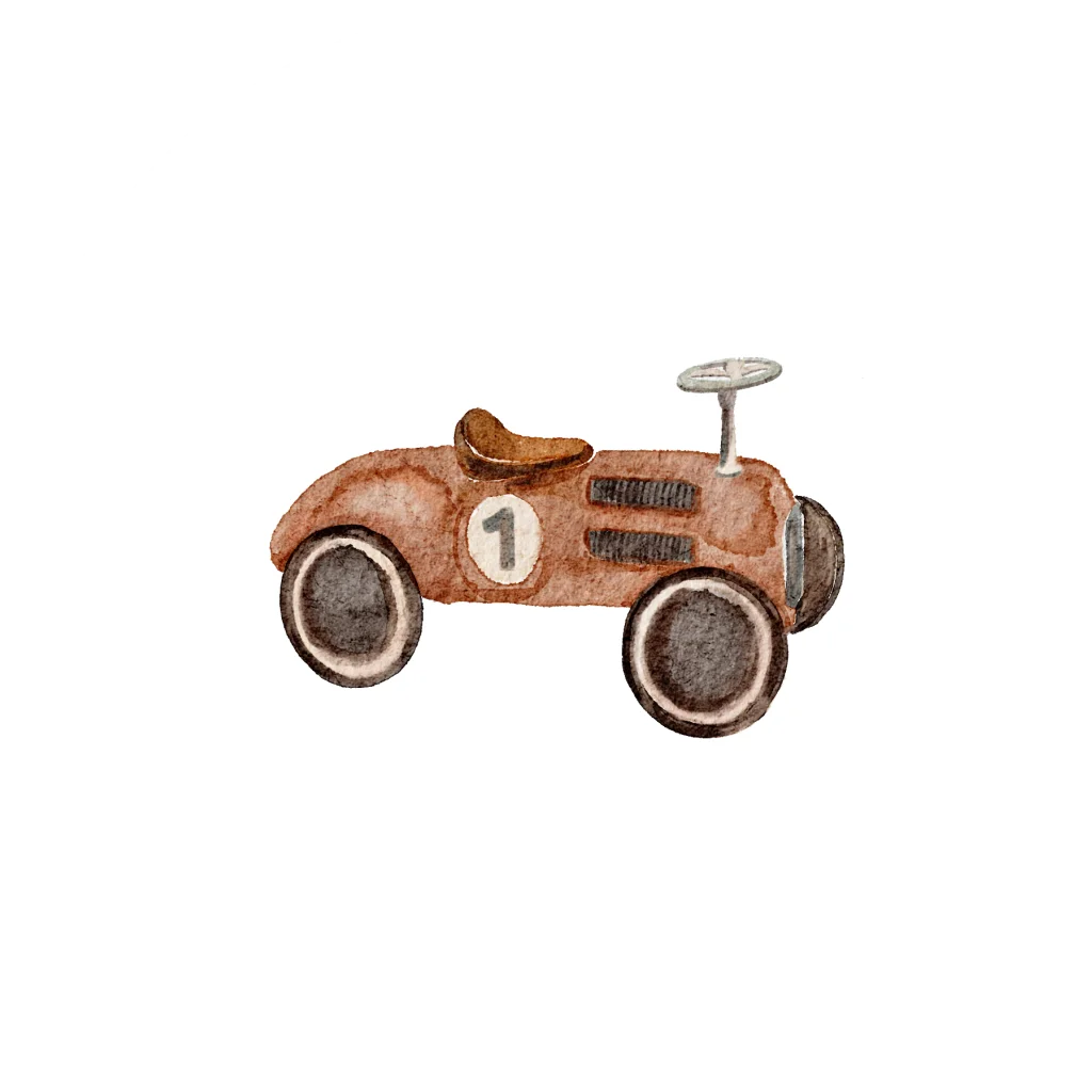 Sticker voor je geboortekaartje met een getekende loopauto
