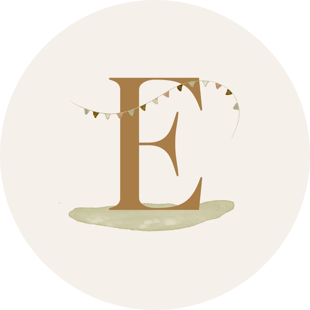 Sluitsticker voor een geboorte met een meisje een initiaal en vrolijke vlaggen.