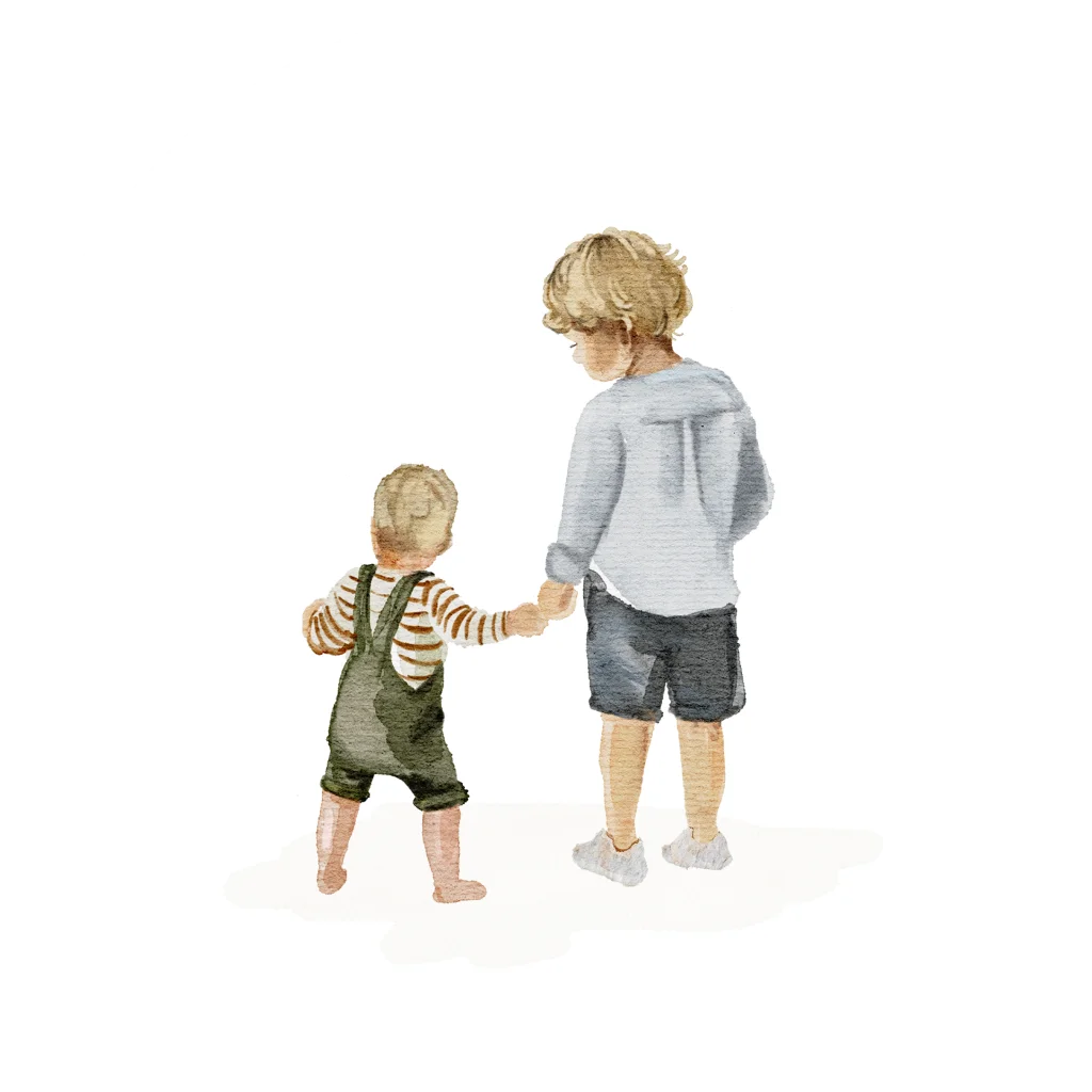 Sluitsticker geboorte tweede kind broer broertje aquarel