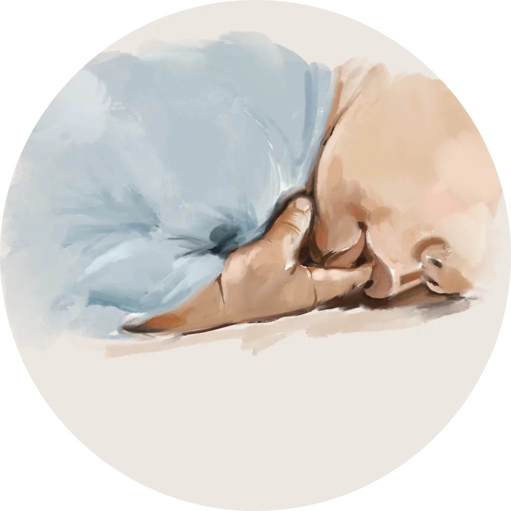 Sluitsticker met een illustratie van een slapend jongetje in olieverf geschilderd.