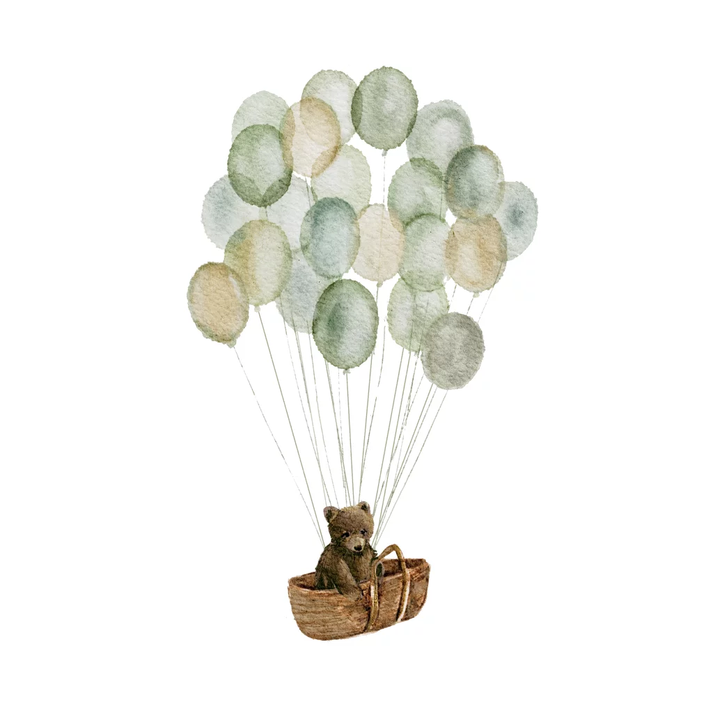 Sluitsticker voor geboortekaartje met mand met beertje en ballonnen
