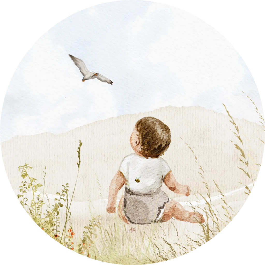 Sluitsticker geboortekaartje meisje duinen vogel
