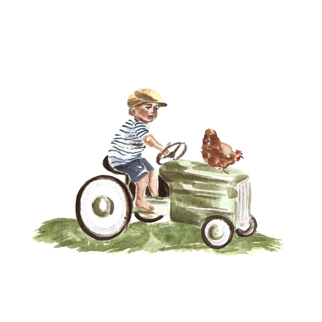 Sluitsticker geboortekaartje tractor met jongen en kip