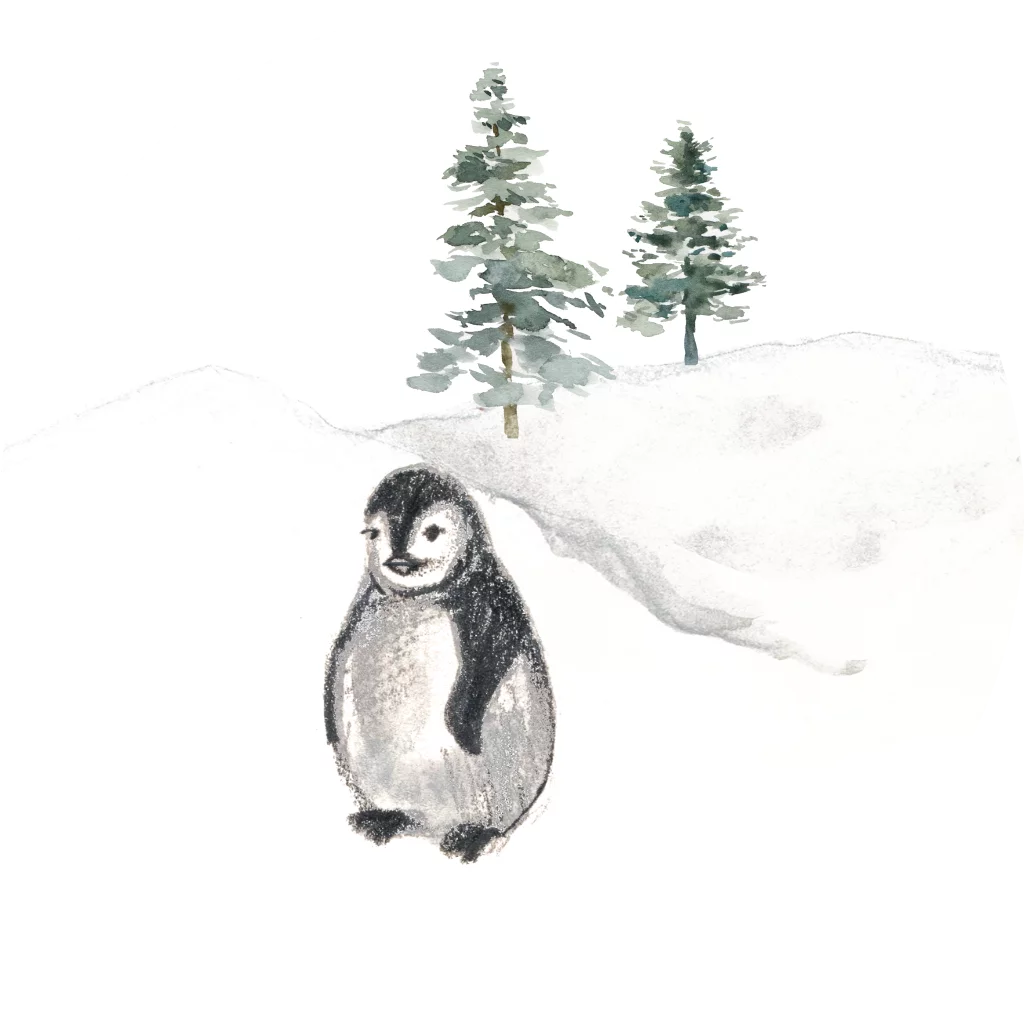 Sluitsticker voor geboortekaartje met een pinguïn in de sneeuw. Leuk voor een winter geboortekaartje.