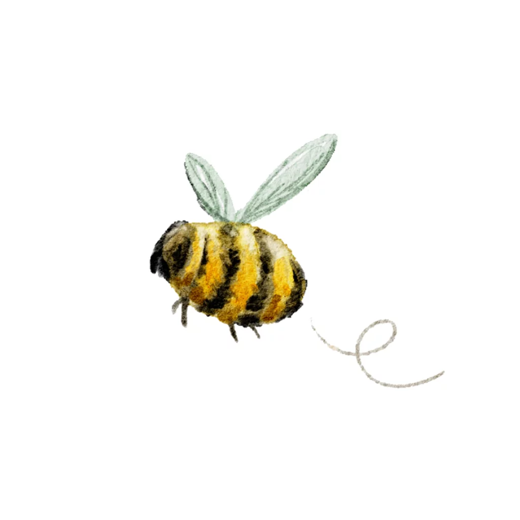 Vrolijke sluitsticker voor een lente of zomer geboortekaartje. Op de sticker staat een getekend bijtje.