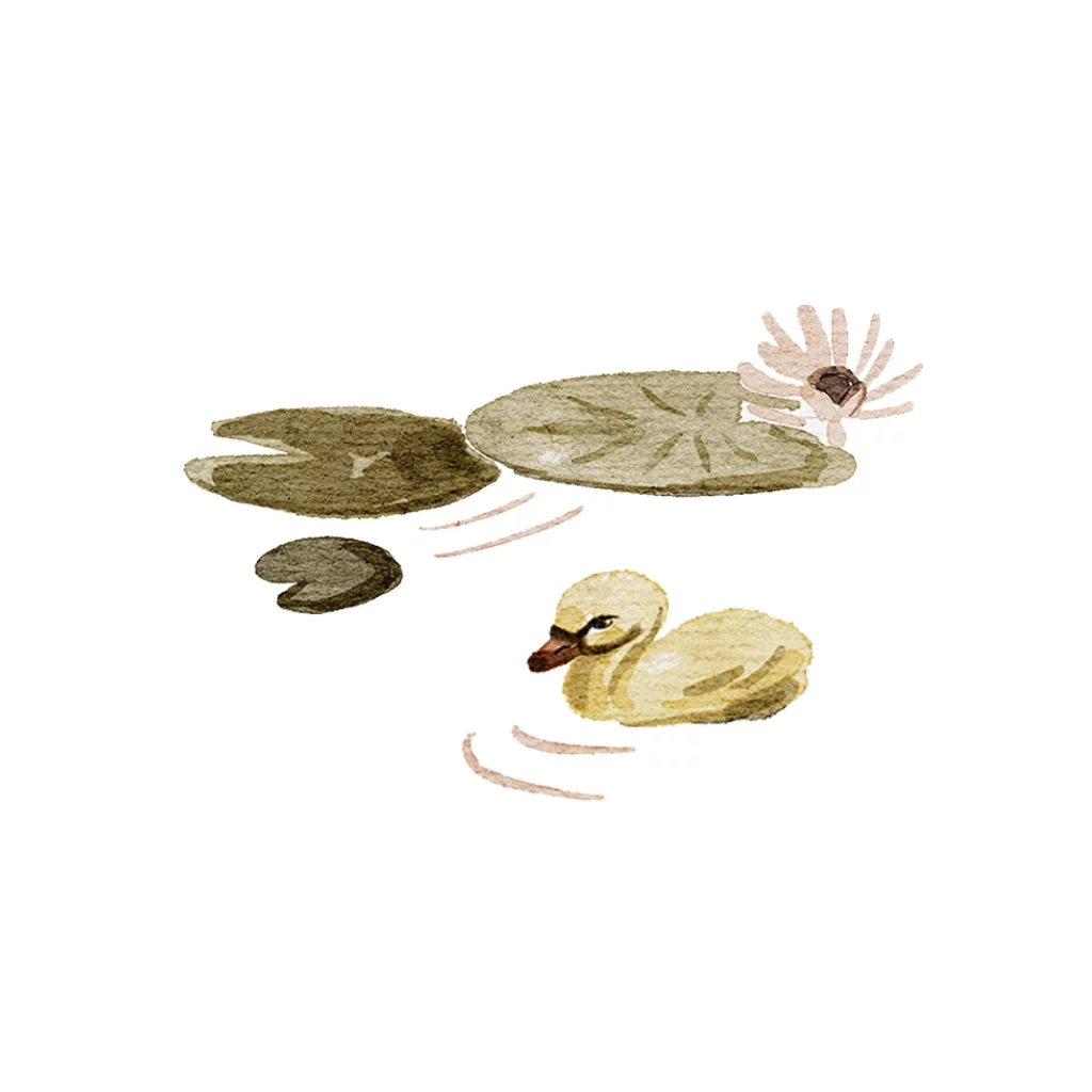 Een leuke sluitsticker met een lief klein getekend eendje en waterlelies. Deze sluitzegel past goed bij de geboortekaartjes in dit thema.
