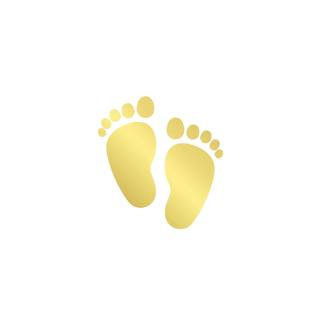 Sluitsticker met baby voetjes in goudfolie van 35 mm. Deze stickers kan je zelf aanpassen en bewerken. 25 stuks per vel.