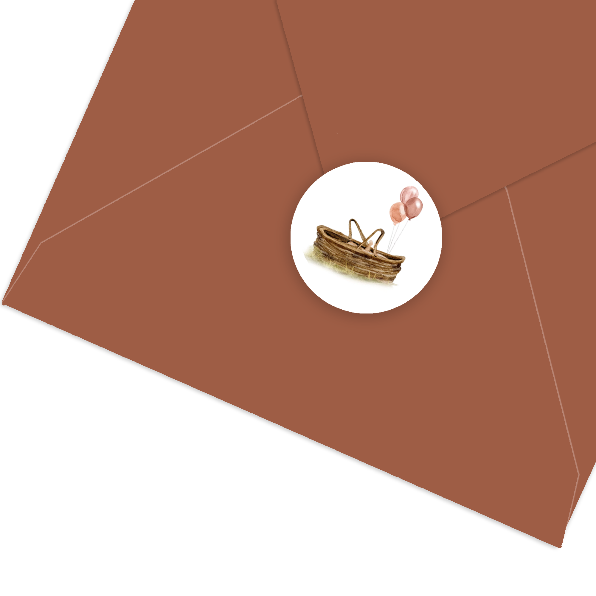 Leuke sluitsticker voor bij je geboortekaartje met een mandje met een baby en roze ballonnen. Ook leuk voor een traktatie.