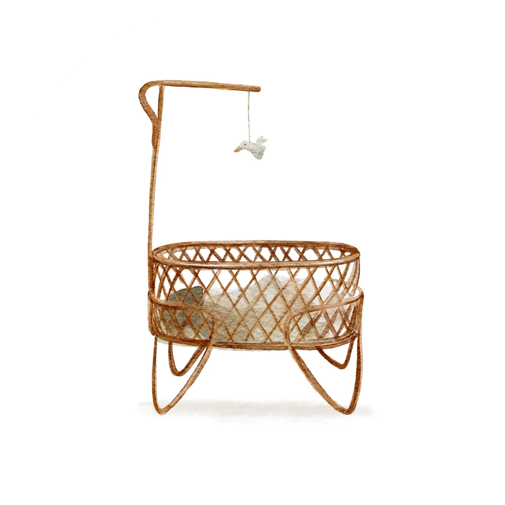 Sluitsticker met een getekend wiegje en een baby. Leuk voor bij de geboortekaartjes.