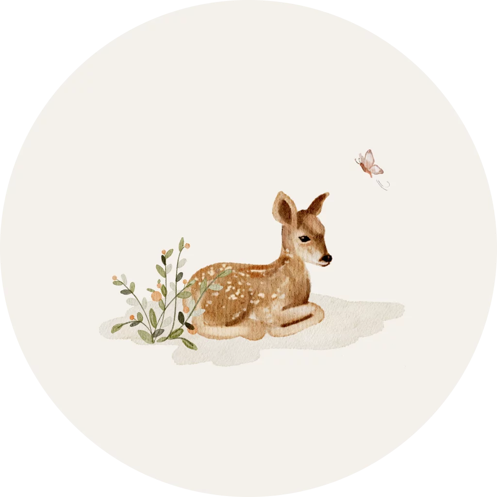 Lieve sluitzegel voor je geboortekaartje met een hertje en een roze vlinder. Deze sticker kan je zelf helemaal aanpassen bij het geboortekaartje.