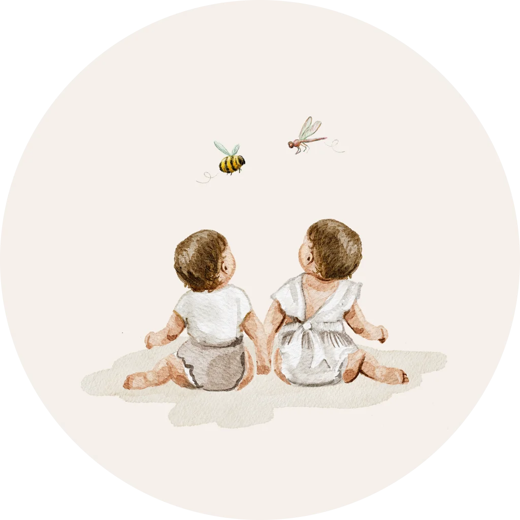 Sluitzegel geboortekaartje voor een tweeling met bijtje en een libelle. De sticker heeft een diameter van 35 mm.
