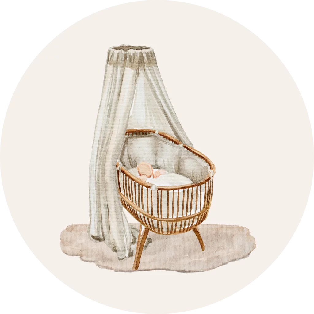 Mooie sluitzegel met een getekend wiegje in neutrale kleuren. Mooie sticker om de envelop van je geboortekaartje mee dicht te maken.