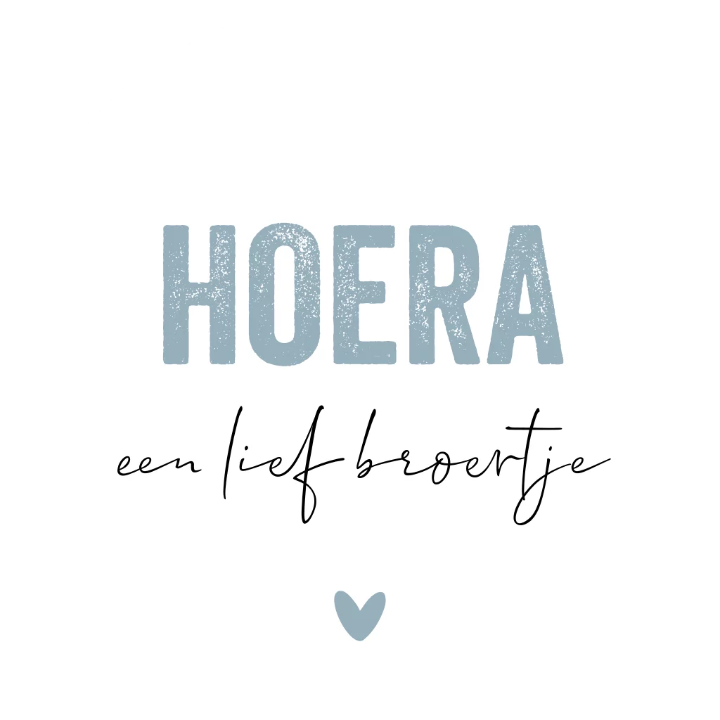 Sticker voor geboorte met de tekst hoera een lief broertje. Daaronder staat een blauw hartje.Maak zelf deze sticker af.