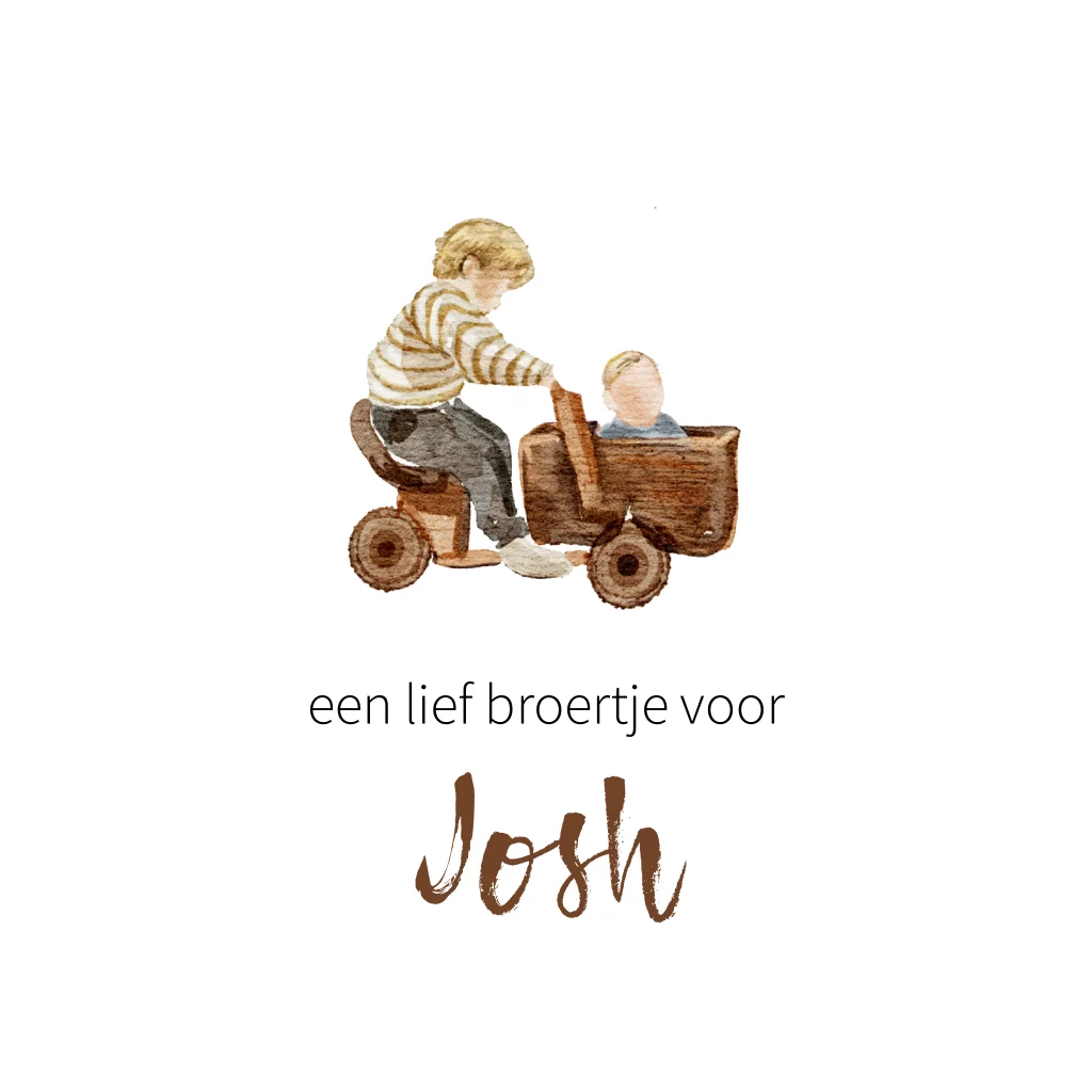Sticker geboorte broertje met een broer op bakfiets en baby broertje