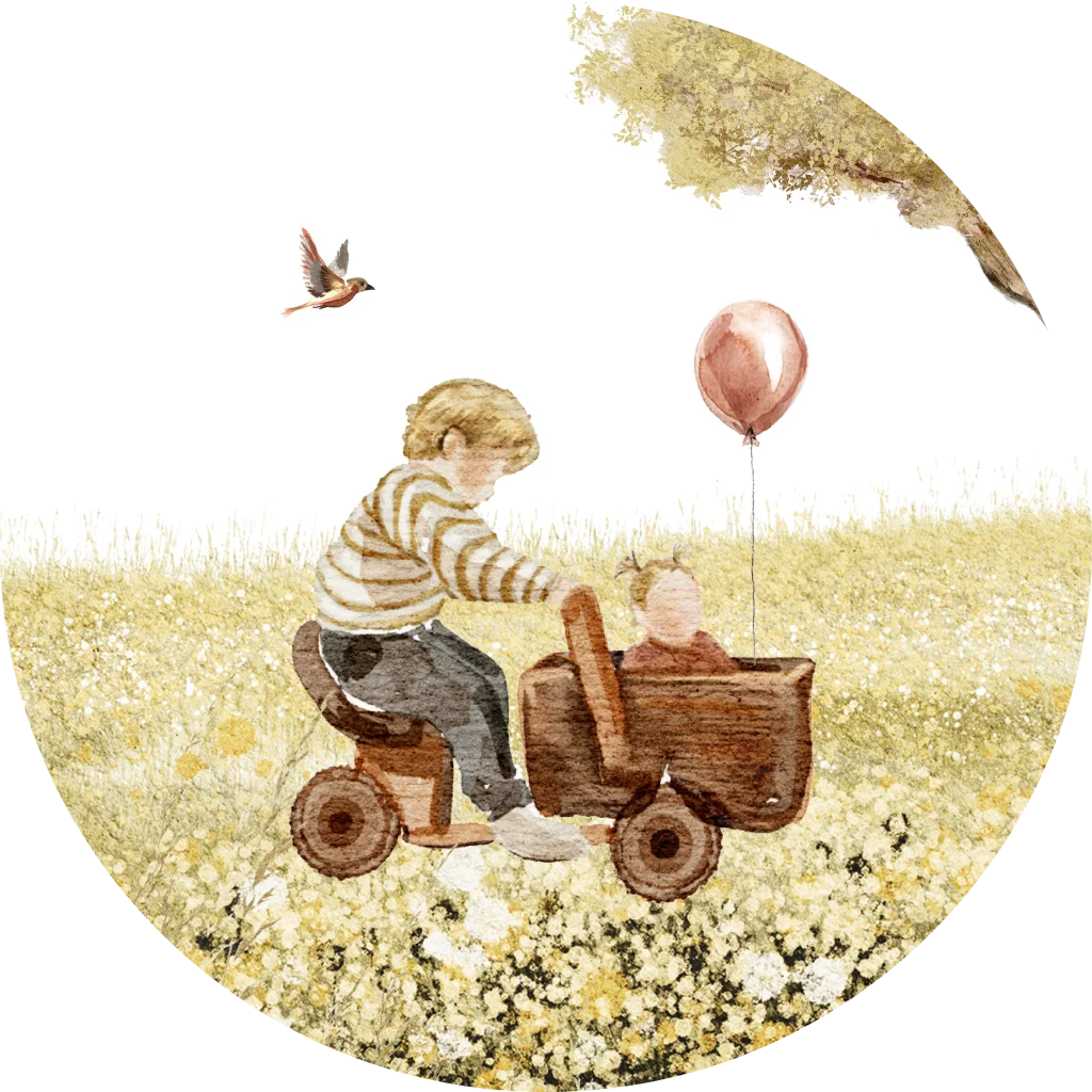 Sticker geboorte herfst bakfiets broer zusje ballon
