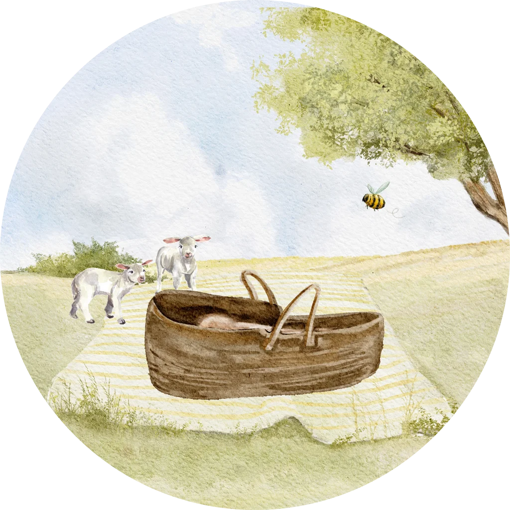 Sticker geboorte lente baby mandje schaapjes bijtje