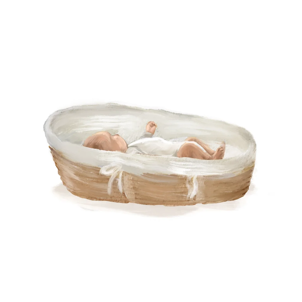 Lieve sticker voor geboorte kaartje met baby in een mandje.De stickers hebben een diameter van 35 mm | 25 stuks