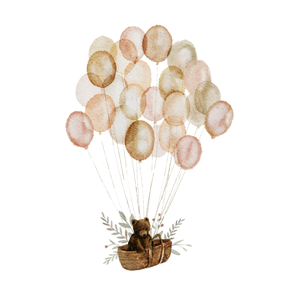 Sluitsticker geboortekaartje mand met beertje en roze ballonnen