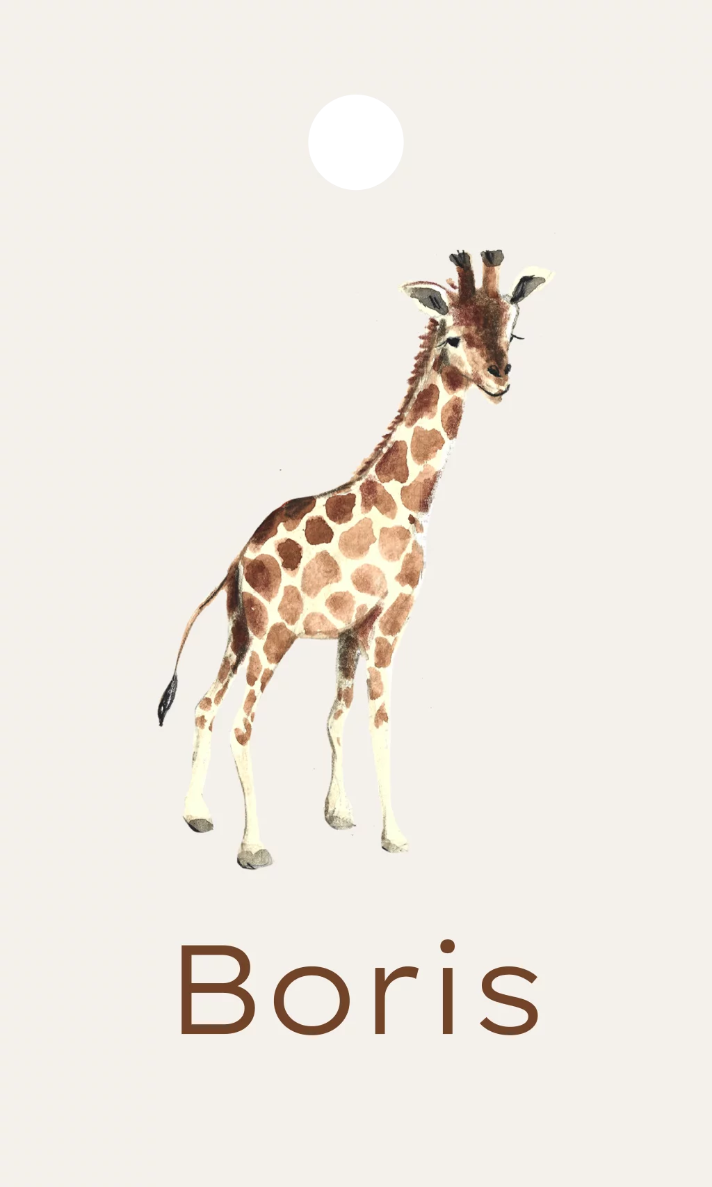Ontwerp zelf leuke jungle labels om aan je doopsuiker te hangen. Dit label heeft een illustraties van een giraffe, past leuk bij een jungle kaartje. Je hoeft er alleen nog maar een touwtje doorheen te doen en aan je doopsuiker te hangen.