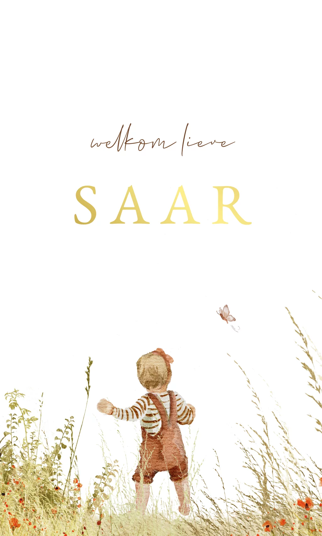 Rechthoekige label voor een traktatie of doopsuiker. Op het labeltje staat een dreumes in een veld met vrolijke zomerse veldbloemen. Deze bloemige, kleurrijke en liefdevolle labels zijn perfect voor het uitdelen van traktaties of doopsuiker. Of je nu een dochter, zusje of tweede kindje krijgt, deze labels maken je geboortekaartje compleet.