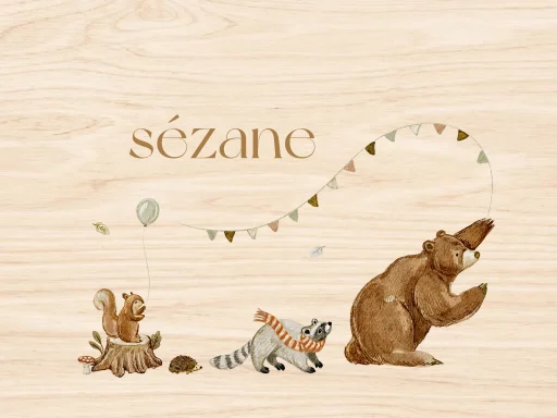 Memorybox baby met illustratie vrolijke bosdieren en naam