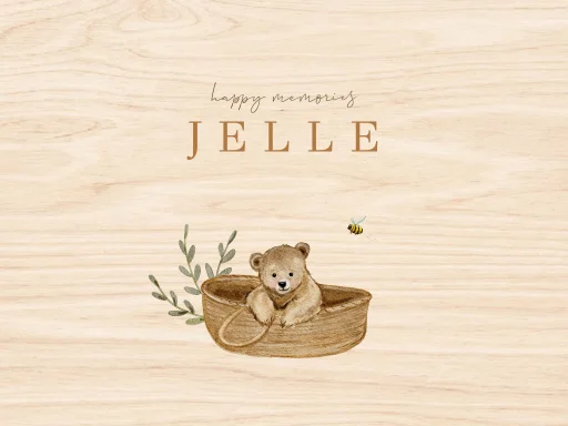 Deze grenen houten memorybox is zo lief. Met de unieke illustratie van een beer in een mandje heb je echt iets moois in handen. Bewerk deze box in de editor en personaliseer met een eigen naam.