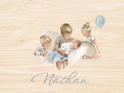Geboortebox met olieverf illustratie voor vierde kindje. Een uniekeherinneringsbox met illustraties om alle dierbare momenten van de zwangerschap en/of babytijd veilig te bewaren. De box kan volledig gepersonaliseerd worden in onze online editor. Deze grenen houten box heeft een afmeting van 40x30 cm en is 13 cm hoog, met handgrepen aan beide zijden.