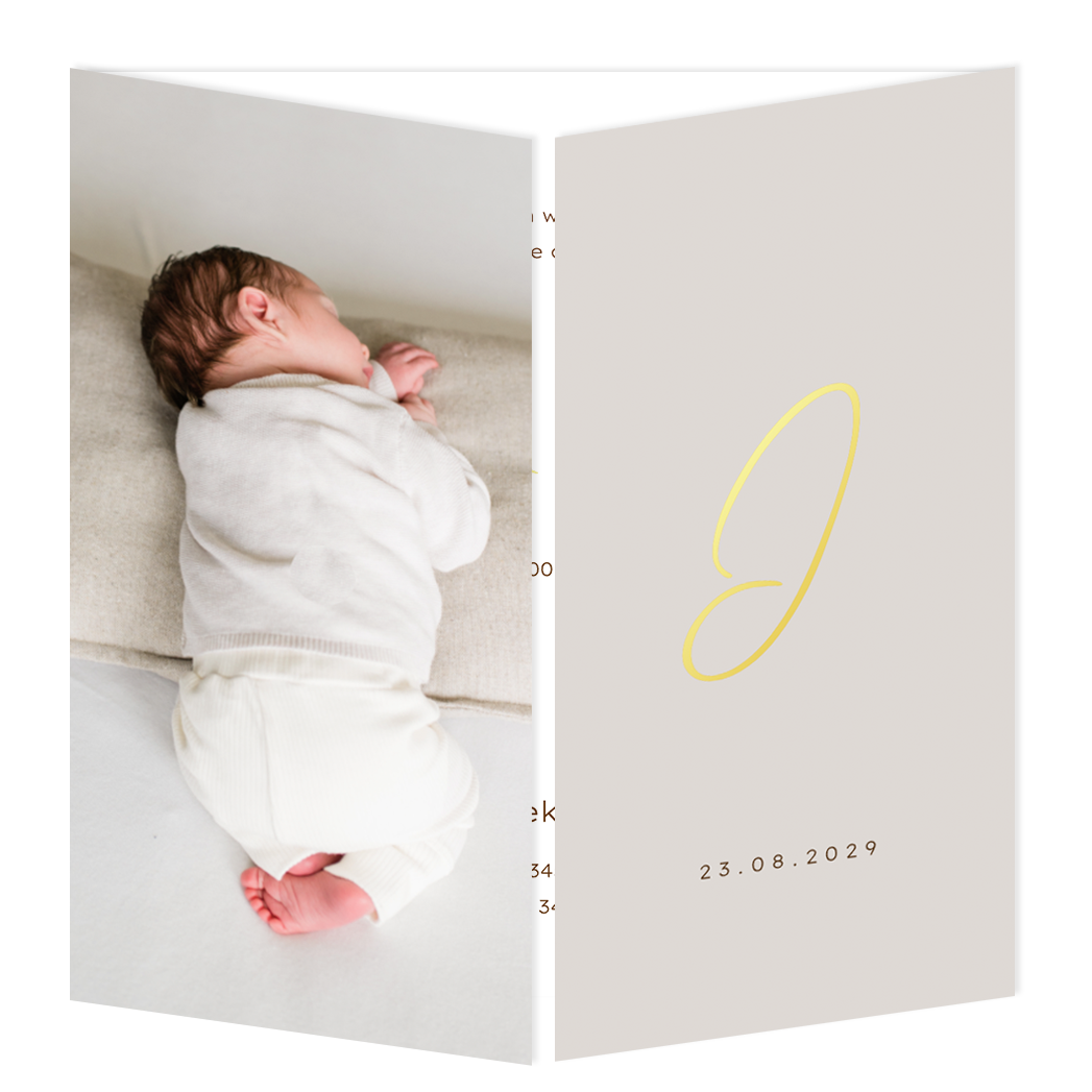 Tweeluik geboortekaartje foto met goudfolie initiaal