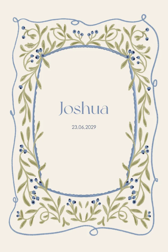 geboortekaartje jongen blauw groen takjes getekend