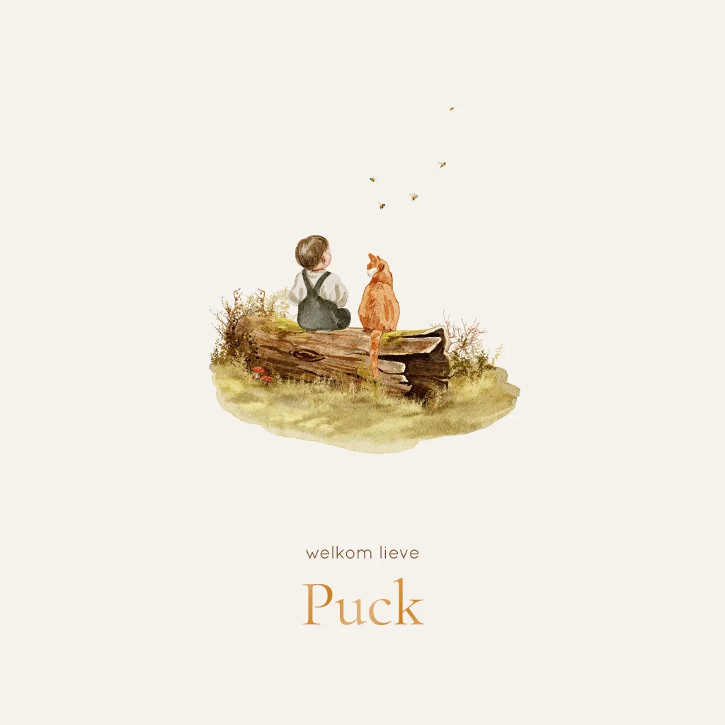 Geboortekaartje getekend jongen huisdieren kat herfst