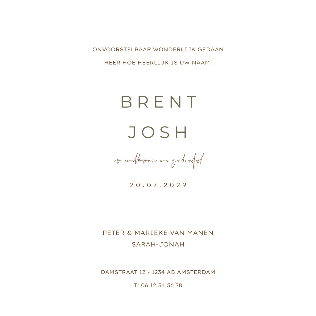 Geboortekaart voor een derde kind met illustraties zus en broertje