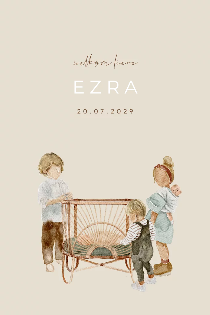 Geboortekaartje voor een 4e kindje ronde hoeken en getekende kindjes