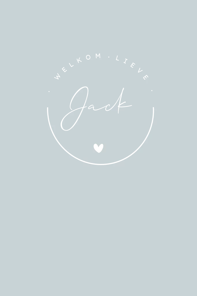 Blauw geboortekaartje voor een zoon met goudfolie logo. Het ronde logo heeft een hartje en de tekst 'welkom lieve'. Daaronder de naam in foliedruk. Bewerk dit kaartje voor een lieve jongen helemaal zelf.